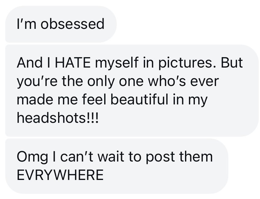 My goal is to ensure you go home with a big confidence boost and feel audition-ready with your gorgeous new headshots!